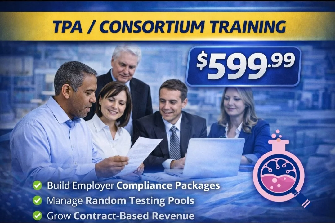 The TPA / Consortium Training Program is designed for collectors, mobile testing providers, clinic owners, and compliance professionals who are ready to move beyond per-collection income and begin offering recurring compliance management services to employer clients.